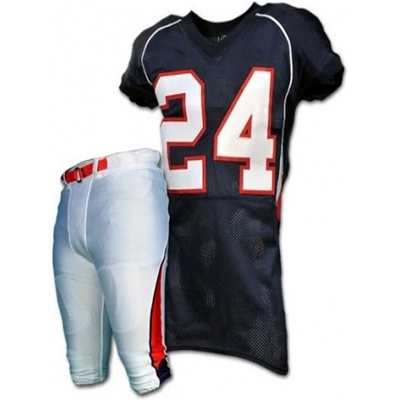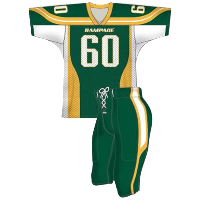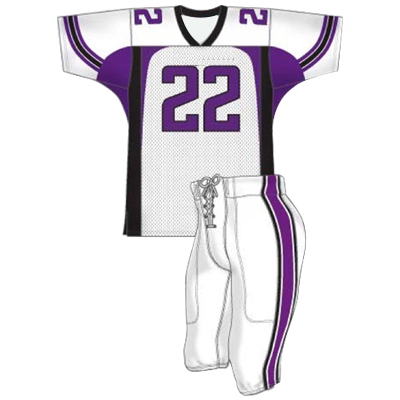 Sublimated football jerseys start out solid white and your custom design is printed into the fabric. There is a flat price for all customization including individual player names and numbers.